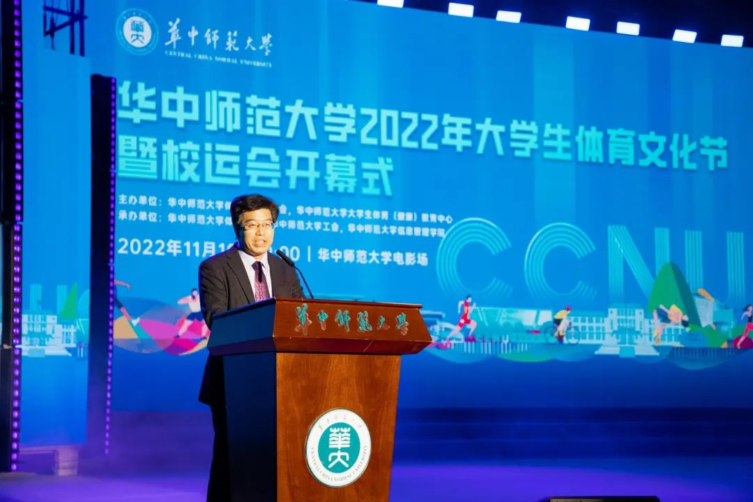 华大在线讯(记者 王丽婧 见习记者 董娱辰 王艳丽)11月10日至12日,我校2022年大学生体育文化节暨运动会举行。校领导赵凌云、查道林、彭南生、陈厚丰、任友洲、彭双阶、李鸿飞、陈迪明,原副校长黄永林及相关职能部门、各培养单位负责人出席开幕式。