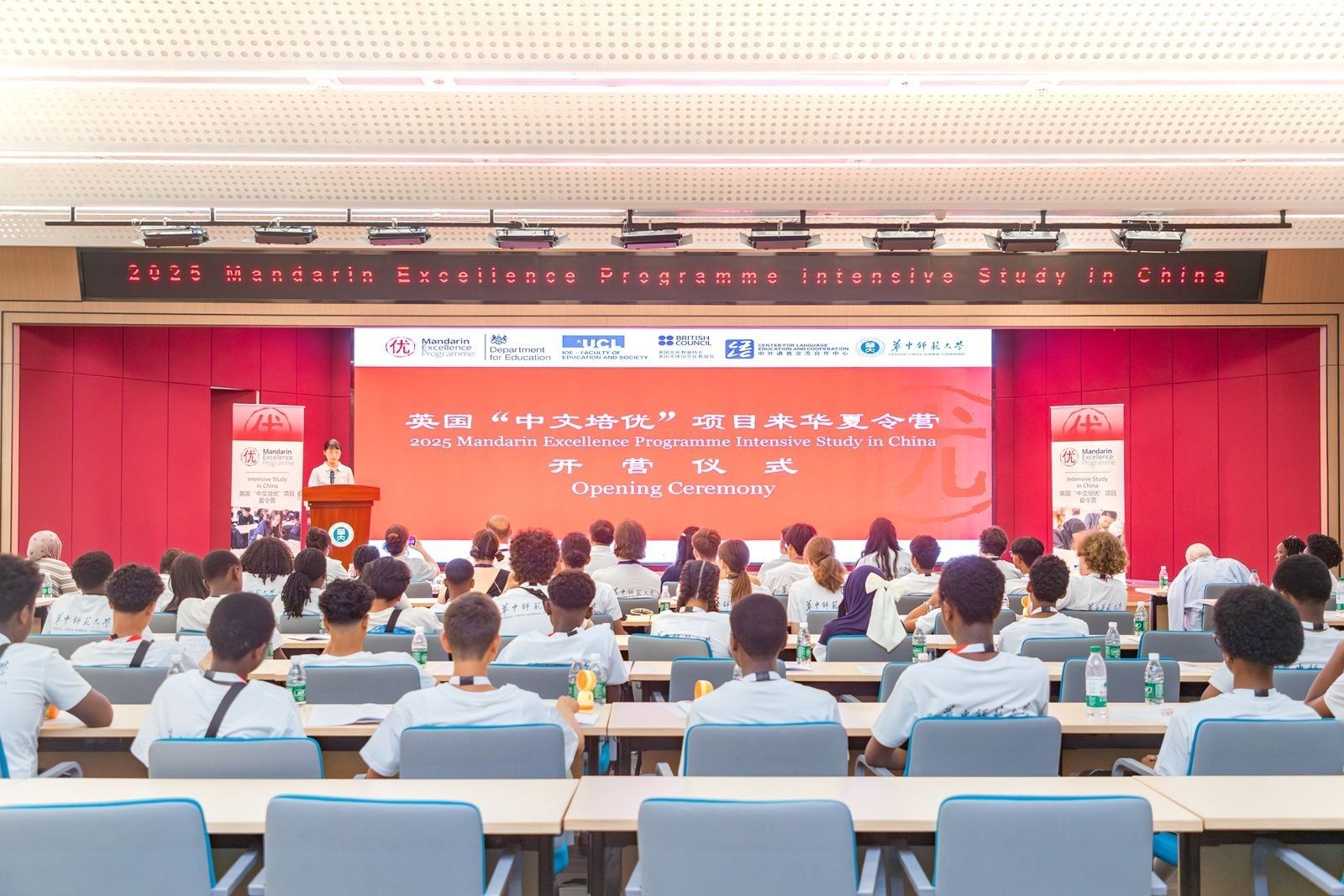 华大在线讯(通讯员 阮劭、袁咏琦)7月6日,由中国教育部中外语言交流合作中心和英国文化教育协会共同主办,我校承办的2025英国“中文培优”项目来华夏令营开营仪式在校举行。副校长任友洲、英国驻华大使馆文化教育处教育项目经理董李莹等出席,来自英国埃尔姆斯学校、赫林厄姆学校、圣约瑟夫学校等50余名师生齐聚一堂,共同见证这一中英青少年文化交流的重要时刻。